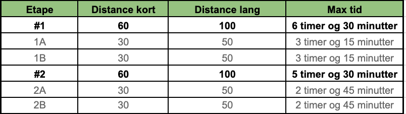 Her kan du se dine maxtider per etape (samt halv-etape)